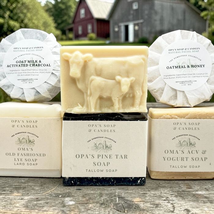All products are Natural & Pure; using only Non-GMO, sustainable plant oils and butters, organic tallow and Phthalate-free fragrance oils. Colorants come from natural spices, herbs and/or minerals (Mica). Other additives may include botanicals, vegetable glycerin, extracts, and natural exfoliants. Candle wicks are 100% cotton or American cherry wood. All raw materials are of the absolute highest quality and are sourced in the US when available, locally when possible, so you can be confident that our products are safe for your family and the environment. Our products are handcrafted in small batches so we are able to offer varying selections, including seasonal specials, that will appeal to everyone. Pamper yourself or someone else with personalized gifts from OPA'S SOAP & Candles.